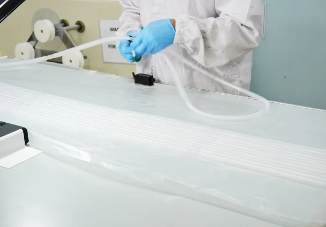 For manufacturing medical disposables, we have an integrated manufacturing line capable of handling all processes in-house, from raw material molding, assembly, and quality inspection, to packaging, sterilization, and shipment. This system enable us to respond flexibly to short lead times and small-lot production, and to quickly meet the diverse needs of medical facilities.